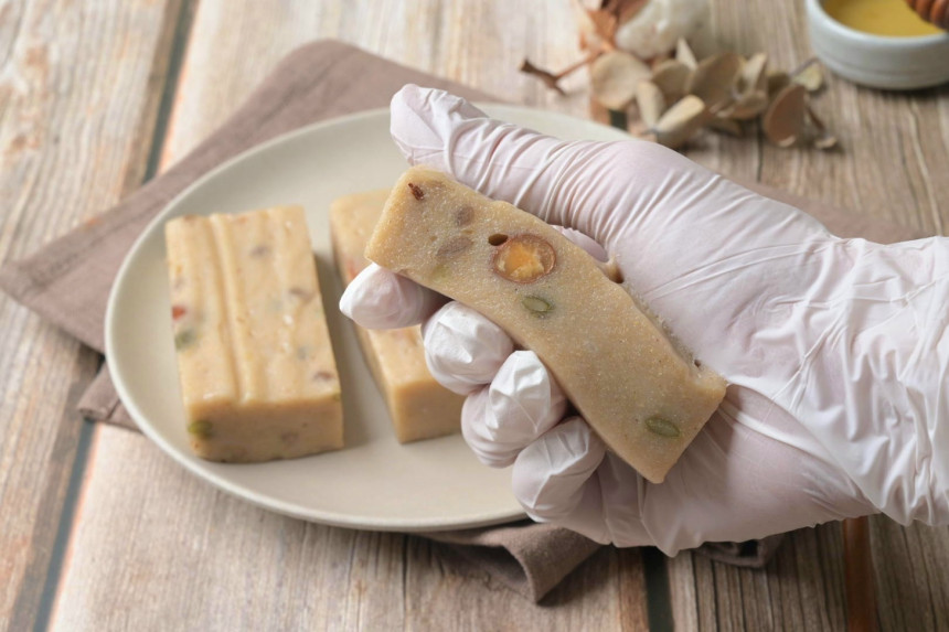 - 식이섬유 및 영양소가 풍부한 현미에 각종 견과류를 넣어 만든 건강떡